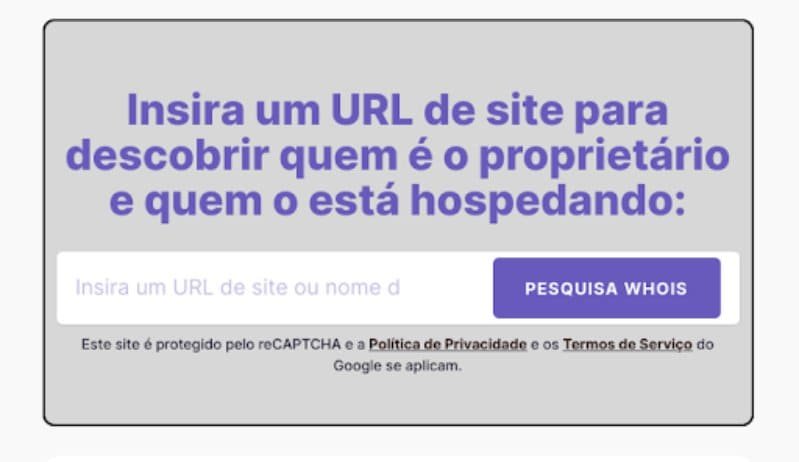 O site WhoIsHostingThis.com é um portal completamente gratuito e simples que foi criado em 2008 para a busca de hospedagem de páginas. Fazer uma pesquisa é bastante simples; tudo o que você precisa fazer é acessar a ferramenta e digitar o endereço da web desejado na caixa de pesquisa.