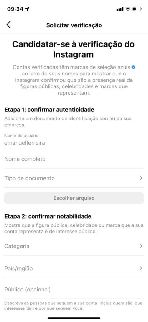 É importante apresentar seus documentos de identificação ou da empresa. Além disso, você precisa preencher com dados que confirmem sua notabilidade na plataforma. Para aumentar suas chances de conseguir a verificação, também é possível incluir links com materiais produzidos.