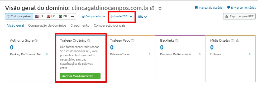 O projeto de SEO foi iniciado em julho de 2021. Antes do projeto, o site não recebia tráfego orgânico e, consequentemente, não captava esses potenciais clientes.