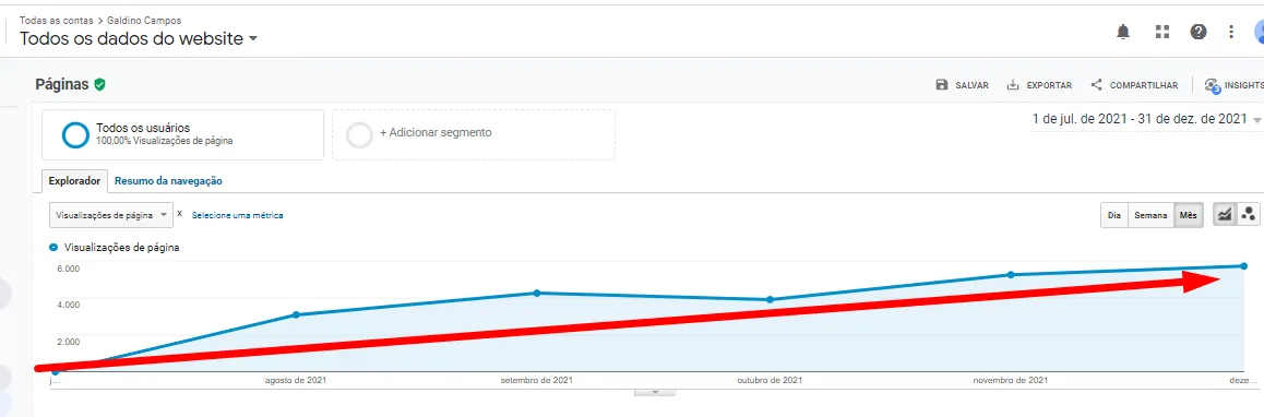 Na próxima imagem, apresentamos o registro do tráfego orgânico desde o início do projeto até dezembro de 2021. Confira!