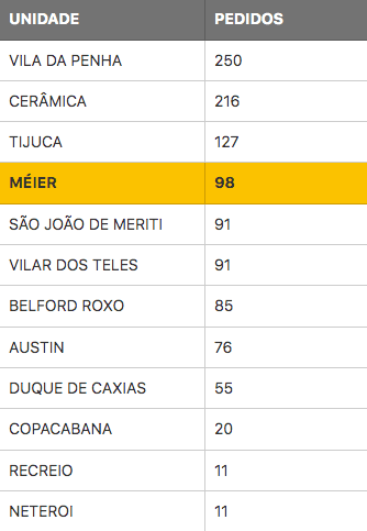 4 – RANKING DO NÚMERO DE PEDIDOS DURANTE O PERÍODO DE AFERIÇÃO (DE 12/01 ATÉ 25/01)