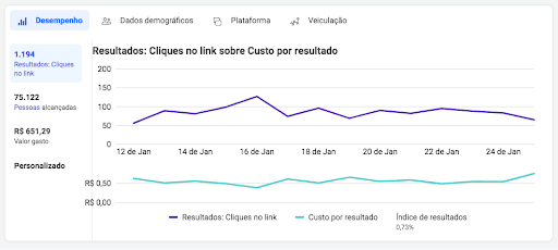 Segue imagem demonstrando os resultados da campanha de tráfego.