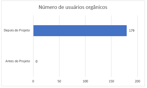 O trabalho de SEO foi iniciado em maio de 2021. Antes do projeto, o site não possuía nenhum tráfego orgânico e deixando de captar clientes em potencial.Nesta outra imagem, podemos destacar o tráfego orgânico do site do escritório de contabilidade no mês de dezembro de 2021. Foram 179 acessos orgânicos (no mês), representando um crescimento expressivo desde o início do projeto de SEO.Gráfico de crescimento do tráfego orgânico mensal (antes e depois do projeto).
