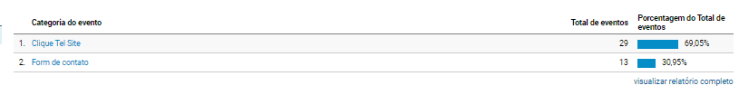 Na imagem acima, demonstramos os eventos (contatos) realizados no site no mês de abril de 2022, com apenas um mês de projeto. Além desses, diversos contatos são feitos através do telefone da empresa.Imagem: Demonstração dos eventos (contatos) realizados no mês de abril de 2022 no site.