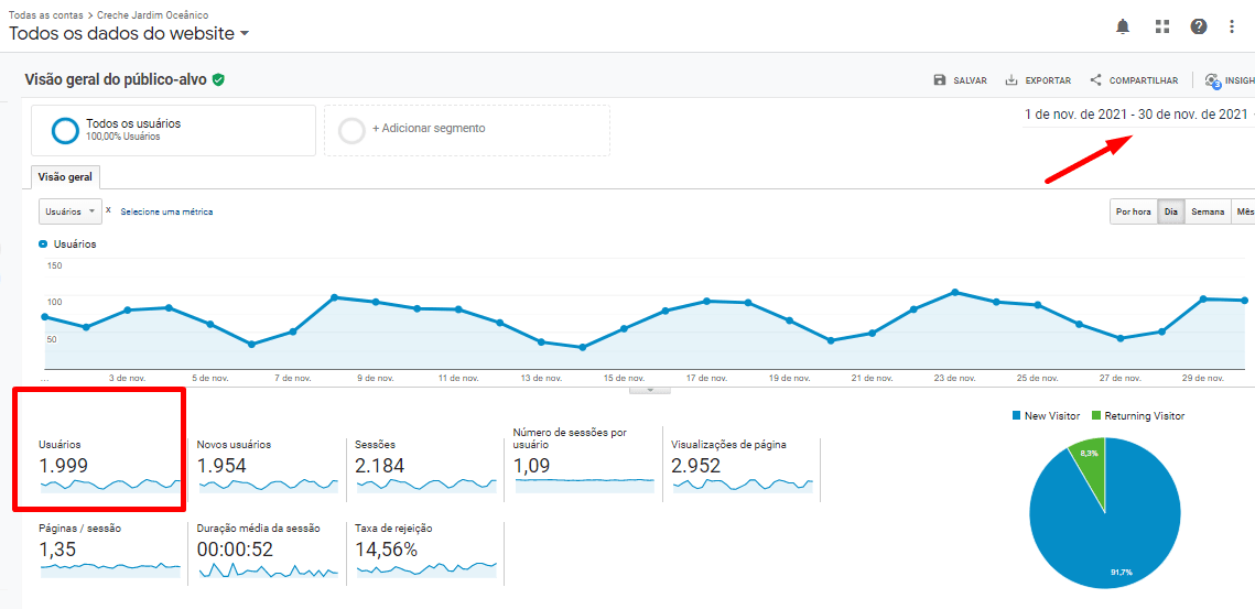 Antes do projeto, o site não possuía tráfego orgânico e, portanto, não captava clientes em potencial. No entanto, após a otimização do site, o tráfego orgânico da creche escola cresceu mais de 700%, e ela teve a oportunidade de captar clientes potenciais.