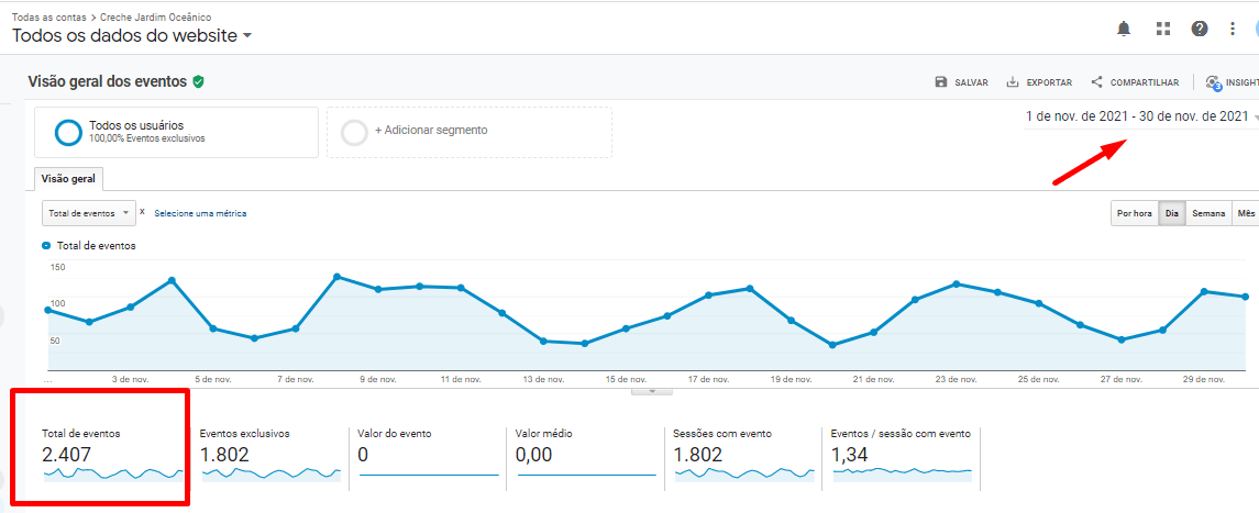 Além disso, a empresa pôde verificar os eventos realizados no site no período, rastreáveis através da página de formulário de contato, e obter uma noção do retorno obtido com o tráfego orgânico do Google.