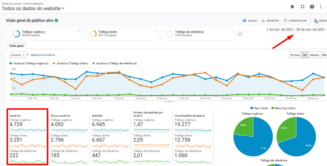 • 485 novos usuários através de tráfego orgânico;