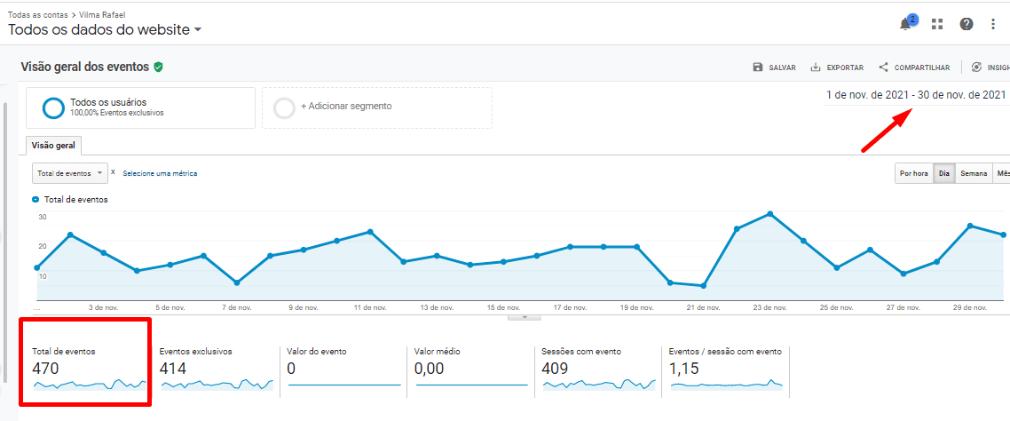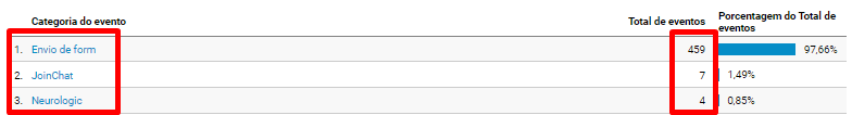 Na imagem acima, demonstramos os eventos realizados no site no mês de novembro de 2021. Esses eventos rastreáveis incluem interações via WhatsApp e preenchimento de formulário de contato. Além disso, muitos contatos são feitos por telefone diretamente com a empresa.