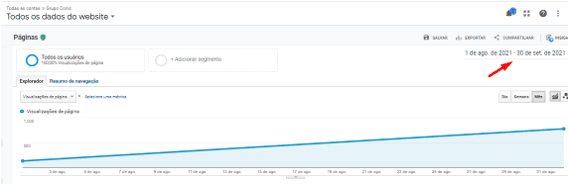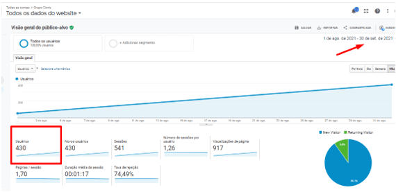 Outra imagem mostra o tráfego orgânico desde o início do projeto até setembro de 2021, representando apenas um mês de projeto.